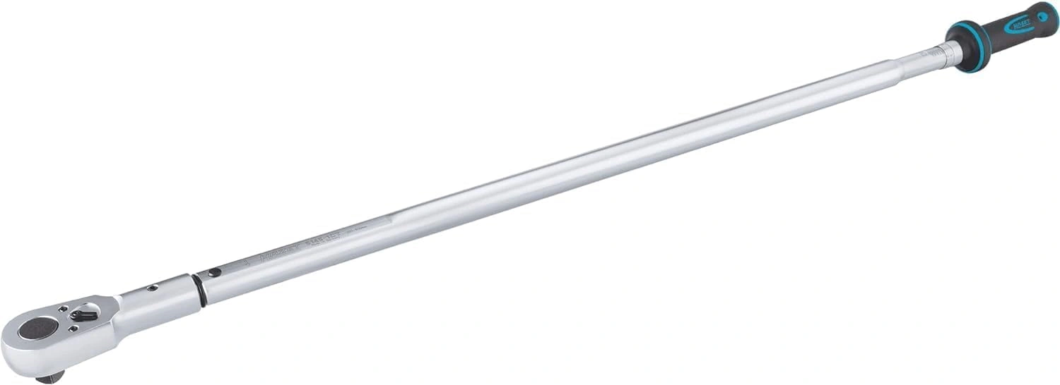 Sistema de alto par con rango de 300–800 Nm y precisión del 2 % en sentido horario, con escala graduada, certificado de calibración y número de serie. El desbloqueo corto ofrece respuesta táctil y acústica para un control más preciso del apriete. Incorpora cuerpo tubular de acero, anillas de codificación de colores y empuñadura ergonómica con collarín. Su longitud de 1283 mm lo hace adecuado para aplicaciones profesionales de alto esfuerzo.
